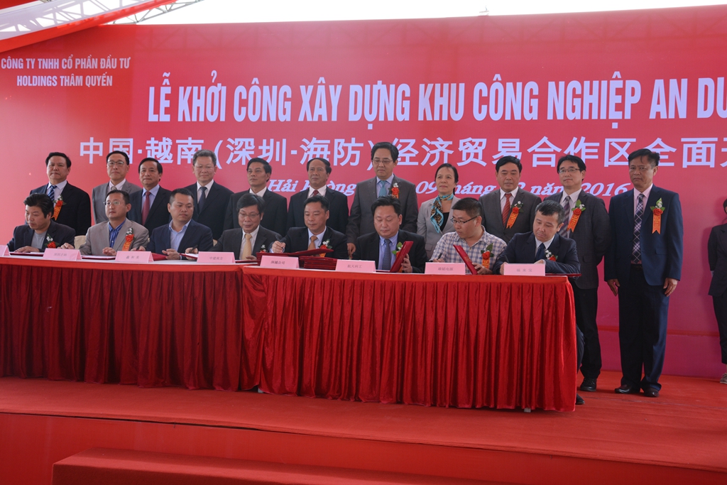 2016年12月9日,深圳—海防经济贸易合作区全面开工。开工仪式上,深圳市深越联合投资公司执行董事、总经理张小涛与7家企业签订意向入园书。