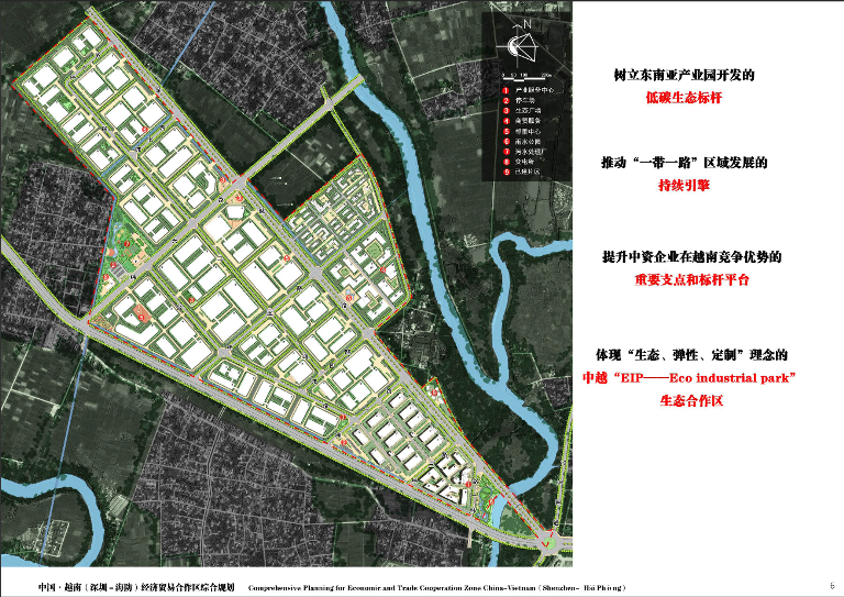 结合深圳产业园区发展经验和海防产业发展态势,打造第三代工业园区,融入当前世界高端产业园区的时尚元素,力求在规划设计、产业定位、开发建设标准等各方面成为海防市工业园区的新标杆,建设弹性、生态、可持续的现代工业园。重点引进绿色环保的科技型制造企业,打造代表“深圳制造”、“中国制造”的优秀企业聚集区、名优产品展示区、“一带一路”和中越两国经济深层次合作的示范区。