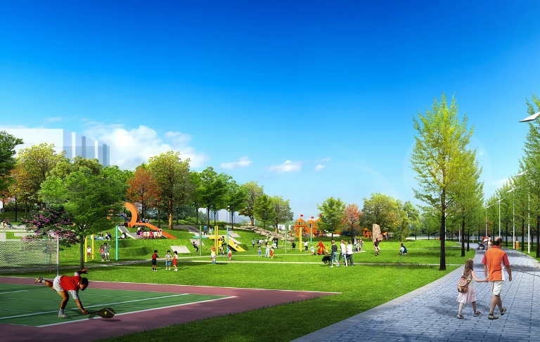 合作区拥有办公楼、公寓、展览、商业配套、会堂,满足企业生产、加工、展销、贸易等功能需要。突出低碳生态,规划有雨水花园、体育乐园。还包括9.8公里的水渠、23公顷的绿地、5.5公里的绿道,形成适宜的生态共享空间,营造轻松活泼、绿意盎然的园区生活空间。